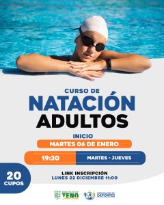 El día de hoy, miércoles 07, se dio inicio al Curso de Natación para Adultos en la Piscina Municipal, una actividad que se desarrolla con inscripción previa y que cuenta con 20 cupos disponibles.